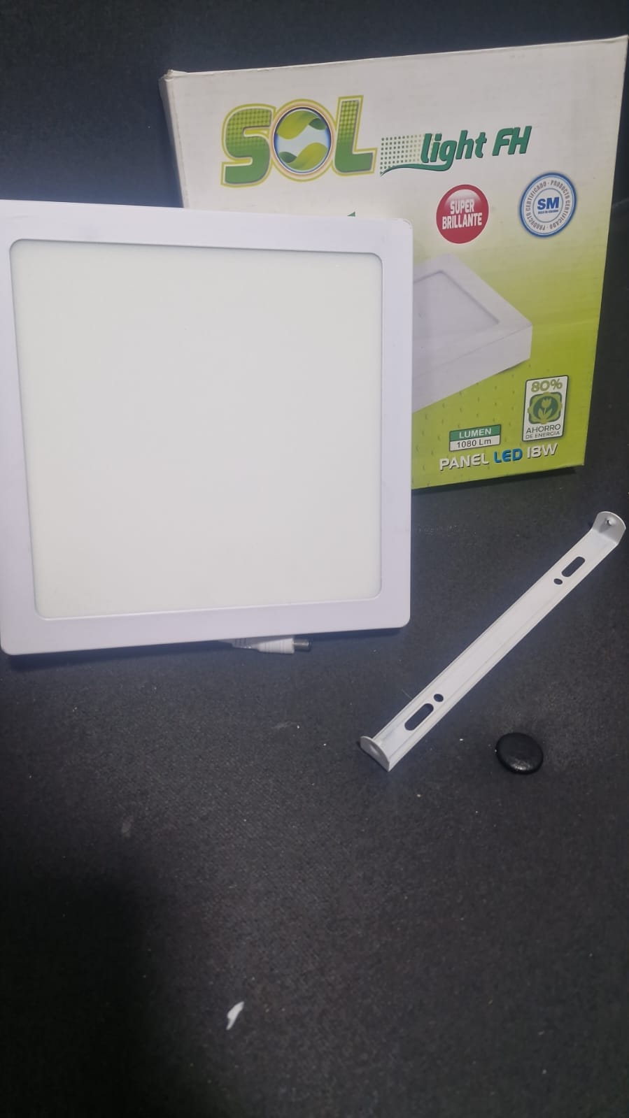 Panel LED de sobreponer cuadrado de 18W, emitiendo una luz blanca brillante. Perfecto para brindar una iluminación eficiente y moderna en cualquier espacio.